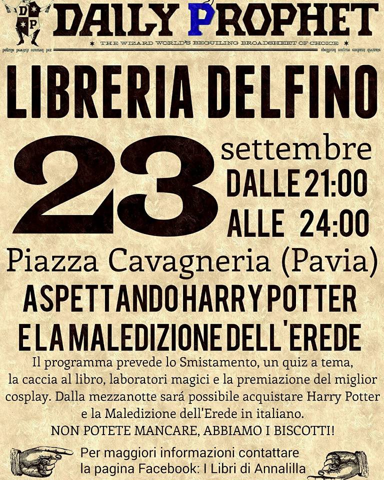 Il giorno 23 settembre 2016, le nostre care Annalille hanno organizzato il loro primo evento all'insegna della magia e del maghetto inglese più famoso del mondo presso la libreria Il Delfino di Pavia.